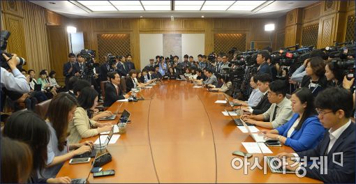 [아시아경제 윤동주 기자] 정세균 국회의장이 16일 서울 여의도 국회 의장 접견실에서 취임기자간담회를 갖고 있다.