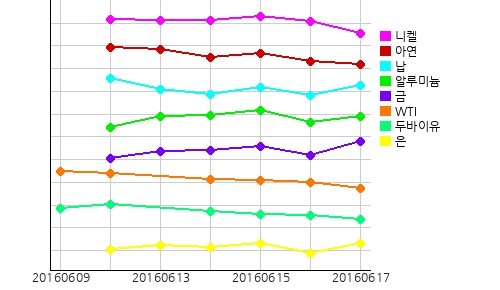 주요광물시세는 주석이 전일 대비 톤당 115.5 달러 올라 17260 달러를 기록했고 납, 알루미늄이 상승세를 보이는 반면, 니켈이 전일 대비 톤당 743.41 달러 떨어져 8041.59 달러를 기록했고 아연이 하향세를 보였다.