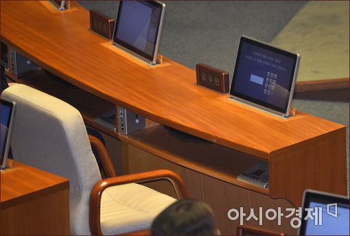 [아시아경제 윤동주 기자] 리베이트 수수 의혹과 관련해 검찰 조사를 앞두고 있는 김수민 국민의당 의원이 22일 국회 본회의에 불출석하고 있다. 이날은 안철수 국민의당 대표가 교섭단체대표연설을 했다.