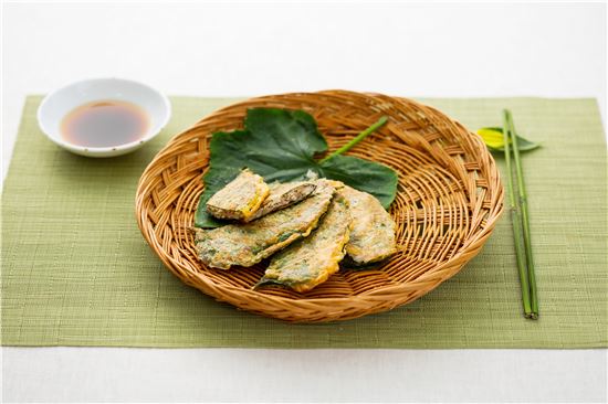 5. 팬을 달구어 식용유를 두르고 깻잎전을 넣어 앞뒤로 노릇하게 지진다.