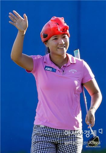 세계랭킹 1위 리디아 고(뉴질랜드)가 27일(한국시간) 미국 아칸소주 로저스 피나클골프장(파71ㆍ6386야드)에서 끝난 미국여자프로골프(LPGA)투어 월마트NW아칸소챔피언십(총상금 200만 달러) 최종 3라운드에서 멧돼지 모자를 쓴 모습이다. 골프팬들의 소음이 유일하게 허용되는 17번홀(파3)에서다. 아칸소대학의 상징인 멧돼지 모자를 특별히 준비해 갤러리의 뜨거운 반응을 이끌어 냈다.