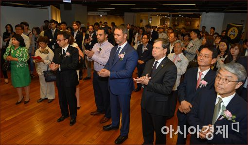 [아시아경제 윤동주 기자] 27일 서울 종로구 세종문화회관 미술관에서 '꿈을 그린 화가 '호안미로' 특별전'이 개막했다. 개막전에 참석한 이세정 아시아경제 사장, 이승엽 세종문화회관 사장, 주안 푸넷 미로 식세션 미로 대표(미로 손자), 프란시스코 코파도 마요르카 호안 미로 재단장, 필라르 바오스 마요르카 호안 미로 재단 큐레이터 등 주요 참석자들이 박수를 치고 있다.