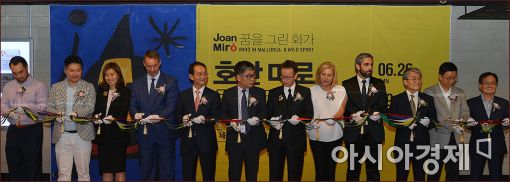 [아시아경제 윤동주 기자] 27일 서울 종로구 세종문화회관 미술관에서 '꿈을 그린 화가 '호안미로' 특별전'이 개막했다. 개막전에 참석한 이세정 아시아경제 사장, 이승엽 세종문화회관 사장, 주안 푸넷 미로 식세션 미로 대표(미로 손자), 프란시스코 코파도 마요르카 호안 미로 재단장, 필라르 바오스 마요르카 호안 미로 재단 큐레이터, 안익태 선생의 손자인 미구엘 익태 안 등 주요 참석자들이 개막 테잎 컷팅식을 갖고 있다.