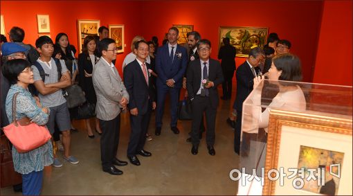 [아시아경제 윤동주 기자] 27일 서울 종로구 세종문화회관 미술관에서 '꿈을 그린 화가 '호안미로' 특별전'이 개막했다. 개막전에 참석한 이세정 아시아경제 사장, 이승엽 세종문화회관 사장, 주안 푸넷 미로 식세션 미로 대표(미로 손자), 프란시스코 코파도 마요르카 호안 미로 재단장, 필라르 바오스 마요르카 호안 미로 재단 큐레이터, 안익태 선생의 손자인 미구엘 익태 안 등 주요 참석자들이 전시장을 둘려보고 있다.