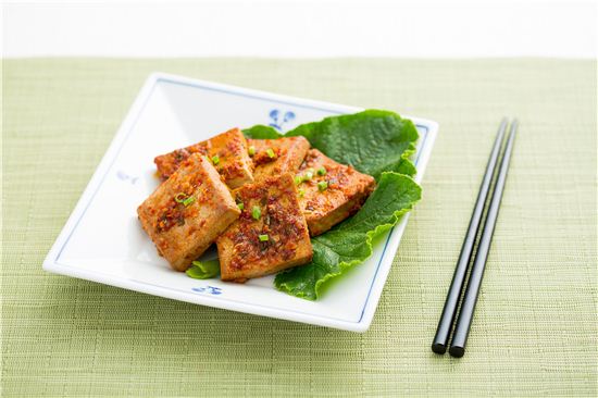 4. 노릇하게 지진 두부에 양념장을 골고루 끼얹고 국물이 자작해 질 때까지 약한 불에서 천천히 조린다.