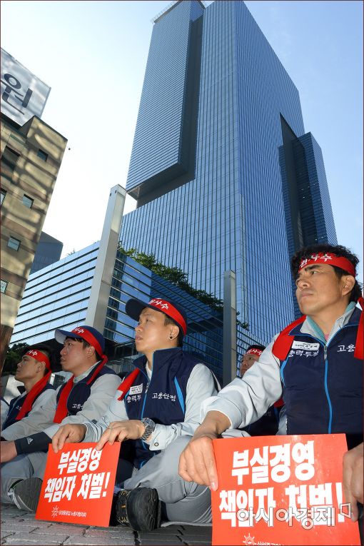[아시아경제 윤동주 기자] 삼성중공업 노동자들이 29일 서울 서초구 삼성 서초사옥 앞에서 '구조조정 반대' 투쟁을 벌이고 있다.