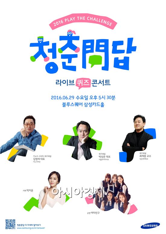 삼성은 29일 서울 블루스퀘어에서 '제3회 청춘문답'을 진행했다고 밝혔다. 청춘문답은 '2016 플레이더챌린지 캠페인'의 일환으로 삼성이 청년과 소통하고, 각계 명사들의 도전을 소개하며 노하우를 공유하기 위해 마련된 행사다.