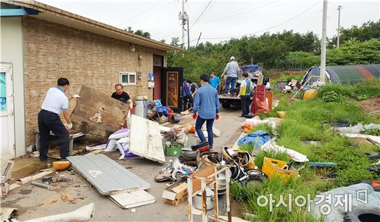 [아시아경제 노해섭 기자]영암군 금정면 복지협의체(위원장 박종운)회원들과 금정면사무소 직원 20여명은 금정면 통정마을에 사는 장애인세대를 방문하여 집안대청소 및 환경정비 자원봉사 활동을 대대적으로 실시하여 지역 주민들의 귀감이 되고 있다.