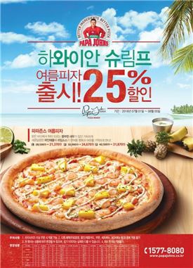 하와이안 슈림프 피자는 진하고 담백한 모짜렐라 치즈 위에 통통한 새우와 파인애플이 듬뿍 올라간 파파존스의 여름 신메뉴로, 상큼한 라임 소스로 마무리해 입안 가득 퍼지는 새콤달콤한 맛이 특징이다.