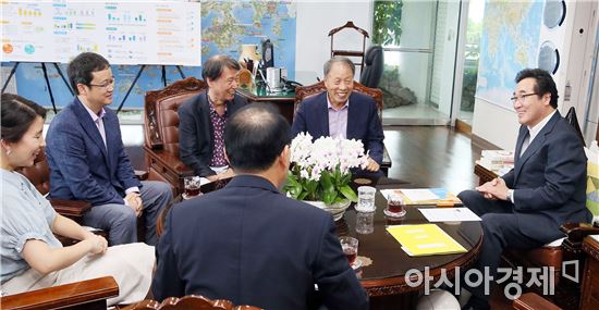 [아시아경제 노해섭 기자]이낙연 전남지사는 6일 도지사실에서 박치문 한국기원 부총재 일행과 면담했다. 서봉수 9단, 유창혁 9단, 하호정 4단이 같이 참석해 국수산맥 국제바둑대회 성공개최 방안 등을 논의했다.