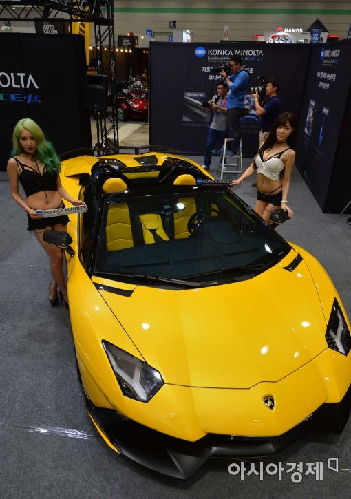 [아시아경제 백소아 기자] 7일 서울 강남구 코엑스에서 열린 2016 서울오토살롱에서 모델들이 화려한 튜닝카 앞에서 포즈를 취하고 있다.