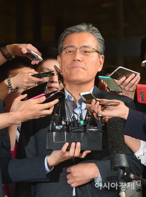 [아시아경제 문호남 인턴기자] 롯데홈쇼핑 TV 채널 재승인 과정에서 비자금을 조성해 금품 로비를 벌인 혐의를 받고 있는 강현구 롯데홈쇼핑 사장이 12일 서울 서초구 중앙지검으로 출석해 취재진의 질문을 받고 있다.