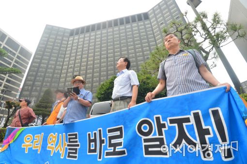 [아시아경제 문호남 인턴기자] 일본 자위대 창설 62주년인 12일 서울 중구 밀레니엄힐튼 호텔 앞에서 시민들이 일본 자위대 창설 기념행사 반대 시위를 하고 있다.