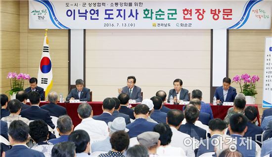 이 지사는 이날 화순군 능주복지회관에서 구충곤 군수와 문행주, 민병흥 전남도의회 의원, 강순팔 화순군의회 의장, 군민 등 150여 명과 현장 대화의 시간을 갖고 이같이 언급했다.