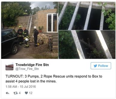 15일(현지시간) 비즈니스 인사이더에 따르면 영국의 10대 4명이 전날 오후 포켓몬 고를 플레이하다가 윌트셔의 한 마을에 있던 네트워크 박스 아래 동굴에 들어갔다가 길을 잃었고, 소방대원에게 구조됐다.