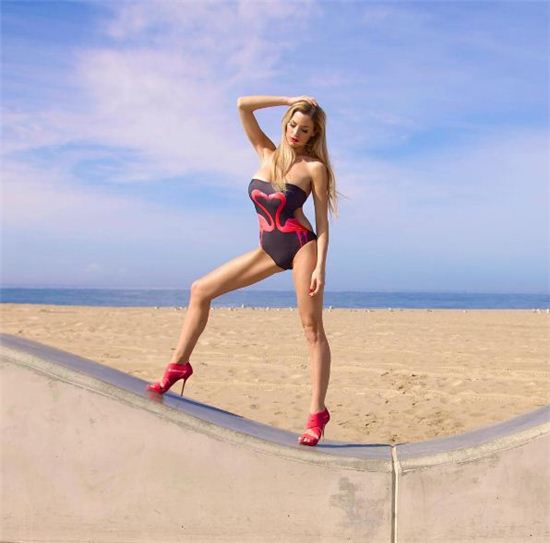 사진 속 조던 카버는 글래머러스한 몸매가 드러나는 보디수트에 아찔한 높이의 하이힐을 신고 포즈를 취하고 있다.