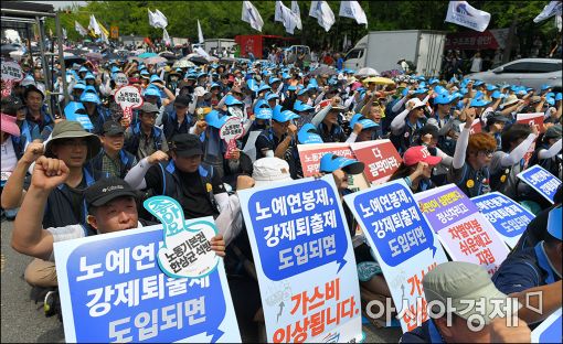 [아시아경제 윤동주 기자] 민주노총 소속 조합원들이 20일 서울 여의도 산업은행 앞에서 성과연봉제, 조선업계 해고 등 현정부의 노동정책을 비난하는 '1차 총파업-총력투쟁 대회'를 갖고 있다.