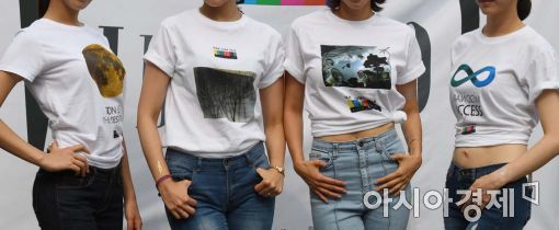 [아시아경제 백소아 기자] 20일 서울 마포구 홍대 걷고 싶은 거리 야외무대에서 열린 백남준 추모 10주기 기념 리스펙트 음악공연 & 패션쇼 'Video Art Look'에서 백남준 리스펙트 의미를 부여한 아트티셔츠를 입은 모델들이 포즈를 취하고 있다.