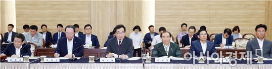 [아시아경제 노해섭 기자]이낙연 전남지사가 20일 오후 한전에서 열린 제3차 빛가럼혁신도시 공공기관장협의회 회의에서 인사말을 하고 있다. 이날 회의에는 윤장현 광주시장, 장휘국 광주시교육감, 강인규 나주시장, 최외근 한전KPS(주) 사장, 임수경 한전KDN(주) 사장 등이 참석했다.