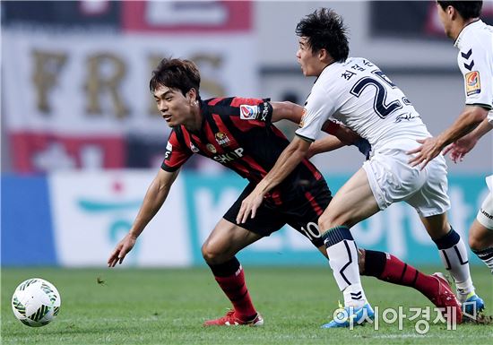 [아시아경제 김현민 기자] 프로축구 FC서울과 전북 현대의 2016 K리그 클래식 경기가 20일 서울월드컵경기장에서 열렸다. 서울 박주영이 전북 최철순과 공을 다투고 있다.