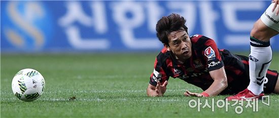 [아시아경제 김현민 기자] 프로축구 FC서울과 전북 현대의 2016 K리그 클래식 경기가 20일 서울월드컵경기장에서 열렸다. 서울 박주영이 전북 최철순의 거친 수비에 넘어지고 있다.