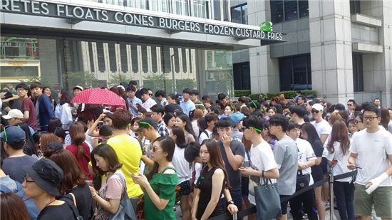 쉐이크쉑 1호점 오픈 앞두고 수백미터 장사진
