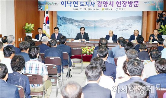 이 지사는 이날 광양 진상면사무소에서 정현복 시장과 이용재, 김태균, 강정일 전남도의회 의원, 송재천 광양시의회 의장, 시민 등 100여 명과 현장 대화의 시간을 갖고 이같이 언급했다.