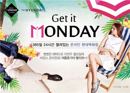 [아시아경제 김현정 기자]현대백화점이 7월 정기휴점일인 25일에 현대H몰과 더현대닷컴에서 동시에 ‘겟잇먼데이’ 행사를 진행하고, 최대 20% 할인한다고 24일 밝혔다.