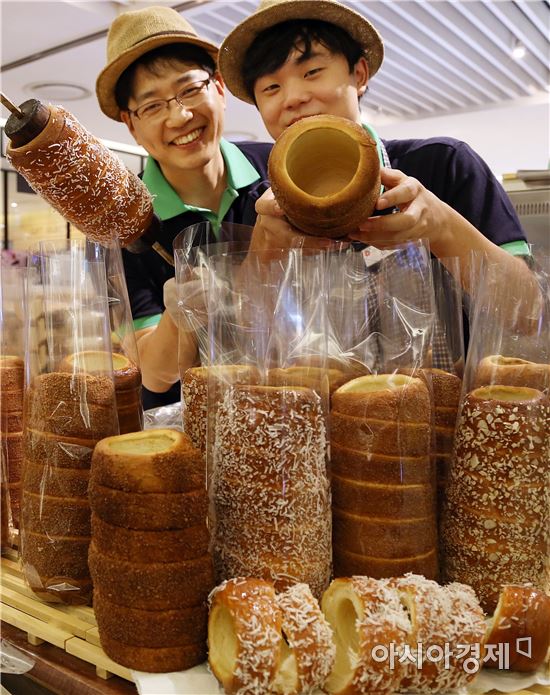 이번 행사 대표상품은 겉은 바삭하고 안은 촉촉하고 쫄깃한 동유럽의 전통 베이커리▲쿠테스하우스 허니 굴뚝빵(1개, 7000원) 특유의 레시피로 담백하면서 달지 않는 크림빵▲크림바바 커스터드(딸기/고구마/망고 크림빵 각,1800원) 프랑스식 정통 파이와 에그타르트 ▲베떼엠 에그타르트(1개,1700원) 이다.