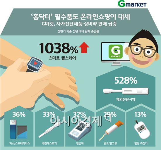 온라인쇼핑사이트 G마켓에 따르면 올해 상반기 혈압계, 혈당 측정기, 스마트 헬스케어 등 스스로 건강을 측정할 수 있는 상품 판매가 전년 대비 최대 11배 이상 증가했다고 28일 밝혔다.