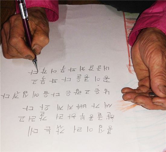 한글 공부하려고 혀가 빠지게 달려왔다.