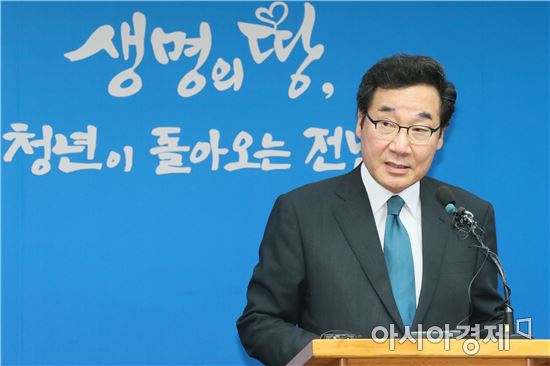 이낙연 전남지사는 9일 도청에서 기자회견을 열고 “입찰에 참여한 3개 국제컨소시엄 가운데 미래에셋 컨소시엄이 투자 신뢰도와 지역경제 활성화 계획 등 전남개발공사가 제시한 조건을 잘 갖추어 우선협상대상자 1순위로 선정됐다”고 밝혔다.사진제공=전남도