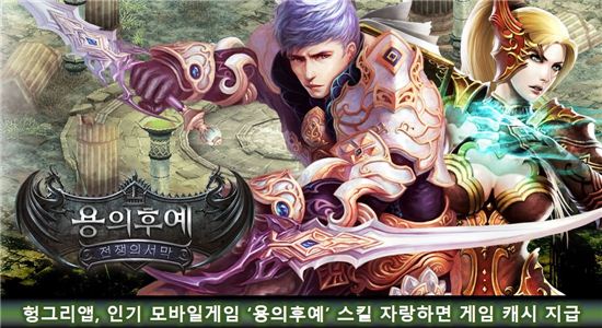 [아시아경제 온라인이슈팀] 위드허그에서 서비스 하는 인기모바일MMORPG ‘용의후예:전쟁의서막(이하 용의후예)’의 공식 커뮤니티 '용의후예 헝그리앱'에서는 간단한 참여로 게임 캐시를 획득할 수 있는 인증 미션 이벤트를 진행하고 있다.