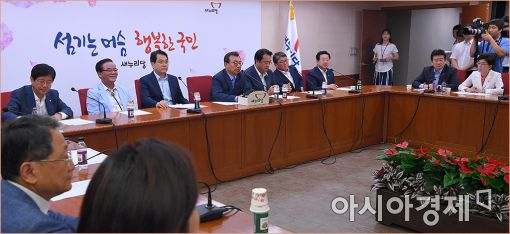 [아시아경제 윤동주 기자] 이정현 새누리당 대표가 17일 서울 여의도 당사에서 열린 최고중진연석회의에 참석, 모두 발언을 하고 있다.
