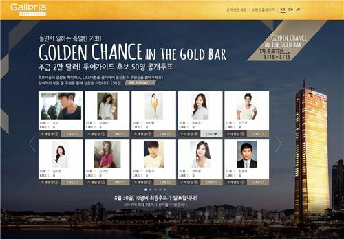 갤러리아면세점63은 이들 가운데 50명을 1차로 선발, 다음달 28일까지 홈페이지에서 공개투표로 10명을 추린 다음 투어가이드 계획서에 따라 3명을 최종 선발할 예정이다.