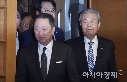 [아시아경제 윤동주 기자] 김종인 더불어민주당 비대위 대표와 박용만 대한상의 회장이 22일 서울 중구 대한상의에서 열린 조찬 간담회에 참석하고 있다.