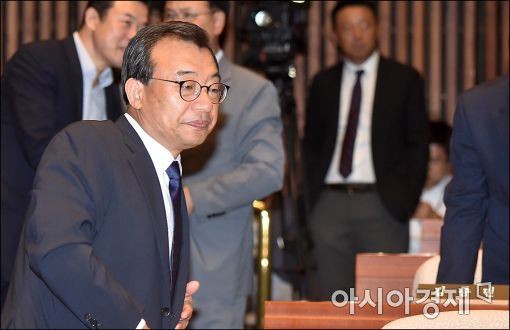 [아시아경제 윤동주 기자] 이정현 새누리당 대표가 22일 서울 여의도 국회에서 열린 의원총회에 참석하고 있다.