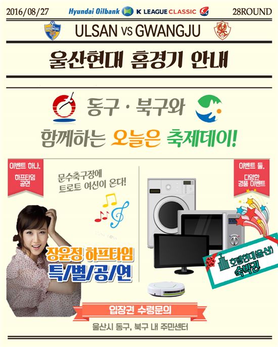 [아시아경제 김형민 기자] 프로축구 울산 현대가 27일 울산문수축구장에서 하는 광주FC와의 홈경기를 ‘동구,북구데이’로 한다.