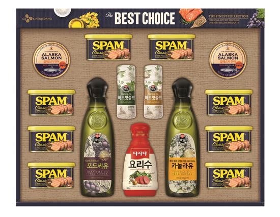 명절 선물세트 베스트셀러인 ‘스팸’을 중심으로 ‘CJ알래스카연어’와 ‘백설 고급유’, ‘비비고 토종김’ 등 소비자들이 선호하는 제품들로 구성한 것이 특징이다.
