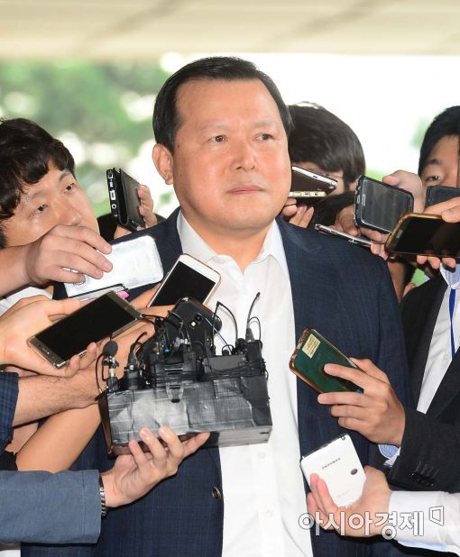 [아시아경제 백소아 기자] 25일 서울 서초구 서울중앙지검 앞에서 황각규 롯데쇼핑 사장이 검찰 조사에 출석하기 전 취재진의 질문을 받고 있다.