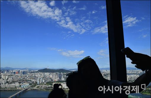 [아시아경제 윤동주 기자] 지난밤 내린 비의 영향으로 모처럼 맑고 푸른 하늘이 펼쳐진 26일 서울 여의도 63빌딩 전망대에서 바라본 서울 하늘이 상쾌하다.