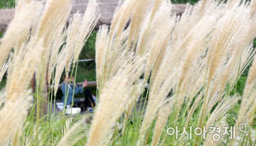[아시아경제 문호남 인턴기자] 선선한 초가을 날씨를 보이고 있는 30일 서울 마포구 하늘공원에서 한 시민이 억새숲 사이에서 휴식을 취하고 있다.