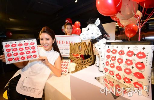 [아시아경제 백소아 기자] 31일 서울 중구 명동 MCM 플래그십스토에서 모델들이 사회공헌 캠페인 레드 키스 한정 클러치백을 선보이고 있다.
