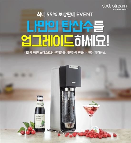 소다스트림의 보상판매 캠페인은 기존에 보유하고 있는 소다스트림 탄산수 제조기 제품을 최대 55% 할인된 가격에 원하는 새 모델로 선택, 구입하는 프로모션으로 롯데 백화점 전 매장(안산점, 부평점 제외)과 소다스트림 고객센터를 통해 진행된다.