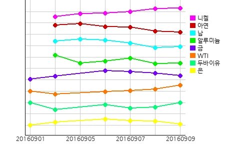 주요광물시세는 니켈이 전일 대비 톤당 29 달러 올라 10339 달러를 기록했고 납, 알루미늄이 상승세를 보이는 반면, 주석이 전일 대비 톤당 89.5 달러 떨어져 19574 달러를 기록했고 아연이 하향세를 보였다.