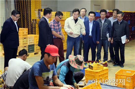 [아시아경제 노해섭 기자]이낙연 전라남도지사는 18일 유기농 고구마 수확이 한창인 무안 해야농장(대표 김기주)과 양파장류 농업회사법인 ㈜초록당(대표 정찬일)을 둘러보고, 농업인들을 격려했다.