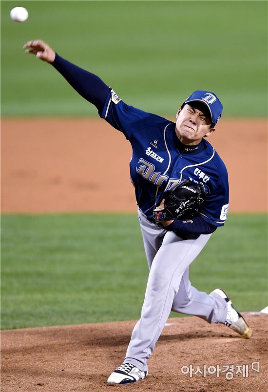 [아시아경제 김현민 기자]프로야구 NC 다이노스와 LG 트윈스의 2016 KBO리그 경기가 21일 잠실구장에서 열렸다. NC 선발투수 장현식이 역투하고 있다.