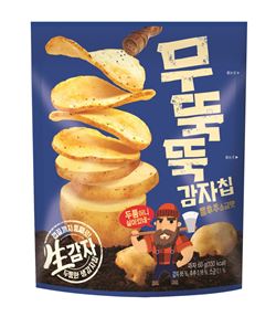 ‘무뚝뚝 감자칩’은 통감자를 약 3mm 두께로 껍질째 두툼하게 썰어 튀겨내 새로운 식감과 맛을 구현한 오리온의 야심작이다. 기존 감자칩보다 2배 이상 두꺼워 ‘와그작’ 씹히는 크런치한 식감이 특징.