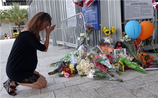 [아시아경제 이지은 기자]미국 프로야구 메이저리그 마이애미 말린스의 우완투수 호세 페르난데스가 25일(현지시간) 보트사고를 당해 향년 24세로 사망했다. 말린스 구장에 마련된 추모장소에 한 여성팬이 찾아와 눈물을 흘리고 있다.
