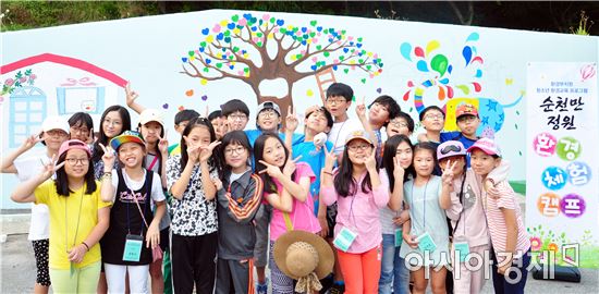 환경교육 첫째 날은 친환경 벽화 그리기와 토피어리 만들기, 레크리에이션 , 캠프파이어 순으로 진행됐다. 둘째 날은 수목원·습지센터·세계정원 등을 볼 수 있는 순천만 정원 견학 등으로 진행됐다.
